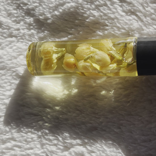 A Marshmallow Scented Lip Treatment Oil. Perfect for moisturizing and softening the lips with a bit of flavor with beautiful flower pieces! Apply often for sweet soft lips before lipstick, gloss, balm, etc. or just apply for a sweet natural lip.